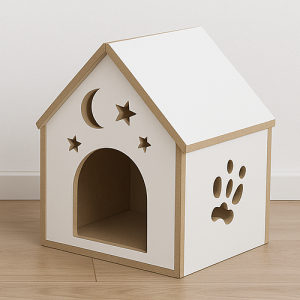 Nowoczesny domek dla kota wykonany z obustronnie laminowanej płyty MDF o grubości 12 mm to idealne połączenie estetyki, trwałości i wygody. Zaprojektowany z myślą o współczesnych wnętrzach, wyróżnia się minimalistyczną formą oraz precyzyjnym wykonaniem na maszynie CNC.