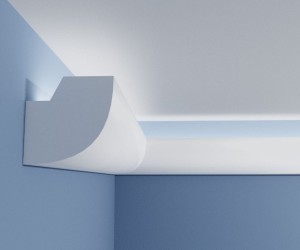 Gzyms oświetleniowy LED ścienny wklęsły to listwa dekoracyjna, która przyklejana jest do ściany w małej odległości od sufitu. Montowana w celach praktycznych, takich jak np. niewielka, optyczna zmiana wielkości pomieszczenia, a także w celu zamaskowania niedoskonałości. Odpowiednio dobrane źródło światła (jarzeniówki, ledy) daje niesamowity efekt.