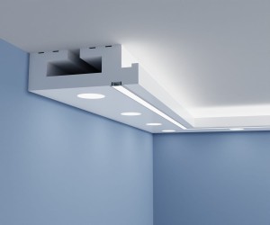 - estetyka - jedyne co musisz zrobić to na łączeniach poszczególnych gzymsów zastosować akryl, dzięki czemu nie ma widocznych łączeń na kantach, jak ma to miejsce z klasycznie robionymi sufitami podwieszanymi