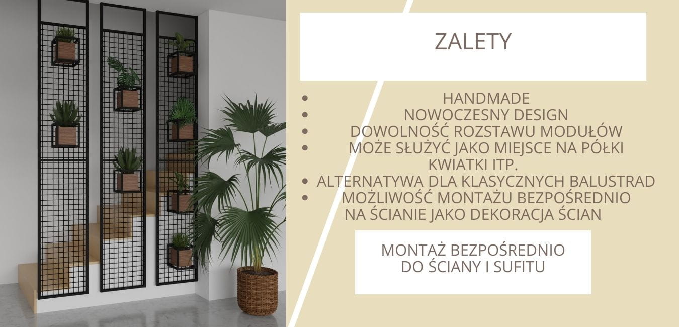 Oferujemy nowoczesne balustrady metalowe w formie siatki, które łączą funkcjonalność z unikalnym designem. Idealne jako balustrada schodowa, te wyjątkowe konstrukcje można wykonać na wymiar, co gwarantuje idealne dopasowanie do Twojej przestrzeni. Dzięki możliwości zawieszenia koszyków na kwiaty, balustrada staje się nie tylko elementem zabezpieczającym, ale także dekoracyjnym, wprowadzając do wnętrza naturalne akcenty.